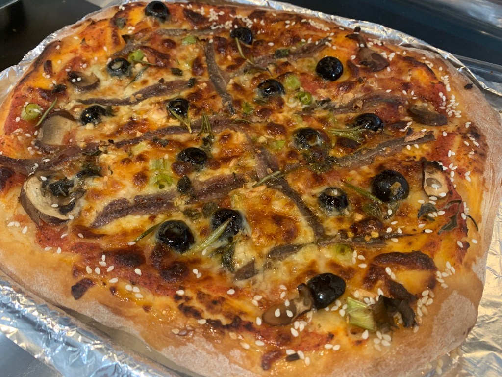 Homemade pizza has been a long term favourite taking me back to college days. Now Jodi and Elliott have made it a regular event with the kitchen buzzing with activity, flour, and toppings galore. I went for an anchovy and black olive variant for this one. The dough making technique is certainly superior to my early attempts producing light and crispy bases. It always turns out to be sociable and creative experience always assisted with laughs and wine!