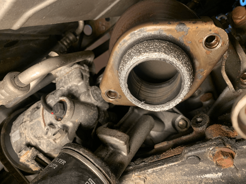 At the other end of the exhaust manifold the ‘donut gasket’ was swapped out too for a new one. This was the most likely bit that needed replacing to solve the gas leak. There was no issue with re-aligning and tightening the exhaust components together again so all good here! On the road test all seems good :@)